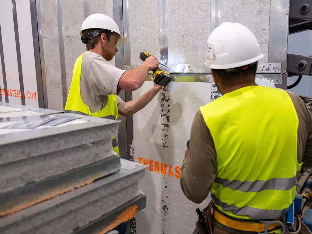 Tehnologia ThermaSteel elimină puntea termică și cu etanșeitatea la aer crescută cu 58%, crește eficacitatea termică (valorile R Rt U sunt semnificativ mai mari, in conformitate cu ASHRAE 90.1 și cu codurile energetice 2021 pentru toate zonele din US. Aflați mai multe despre panourile noastre termoizolante structurale compozite). Vedeți performanța termică în tabelul rezumativ